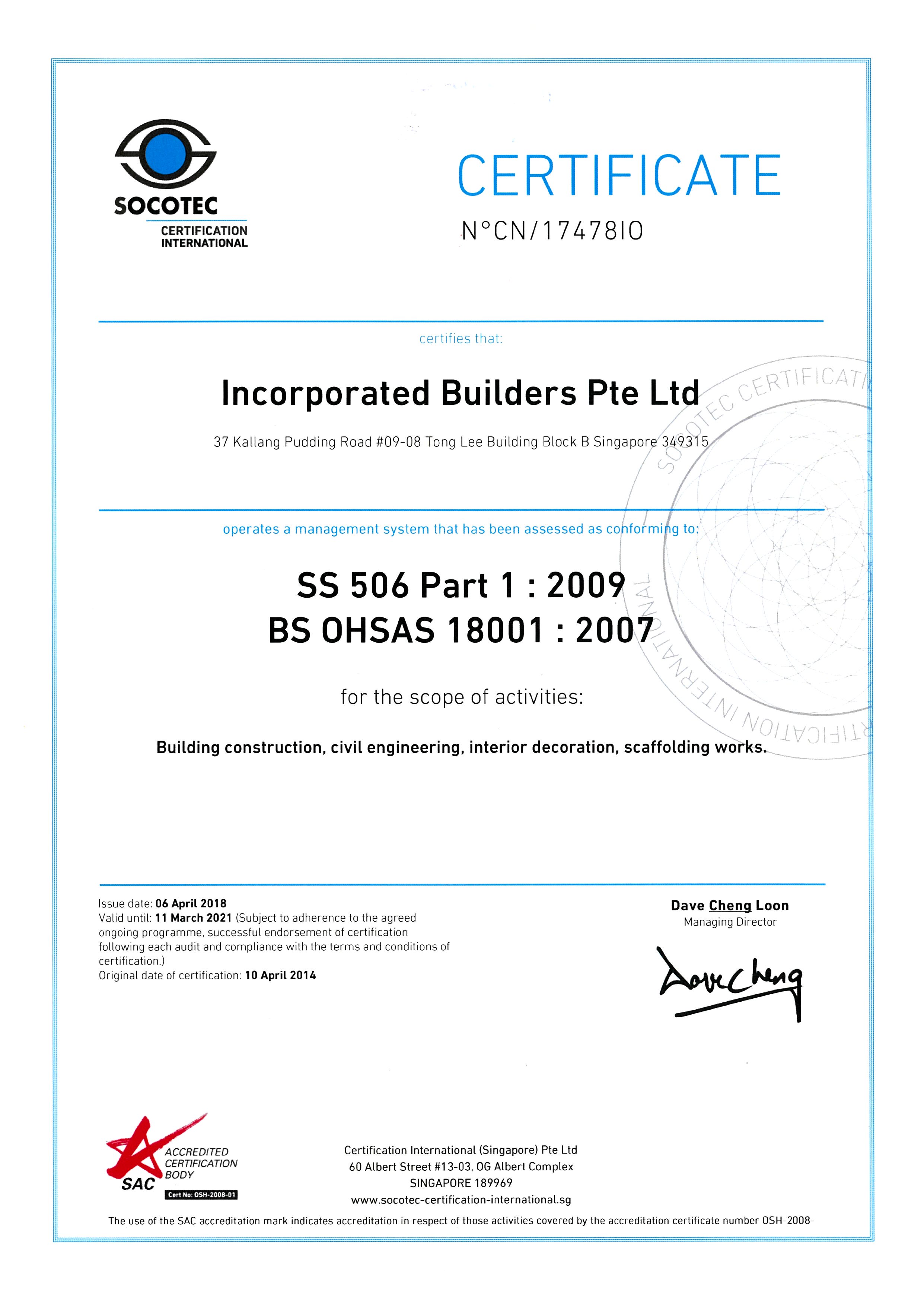 OHSAS 18001 (Exp Mar 2021)